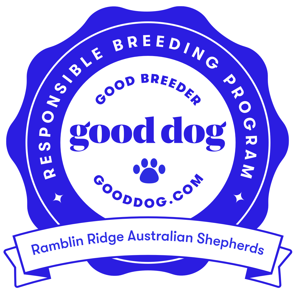 Proud to be recognized as a GREAT Breeder of Australian Shepherds by Gooddog.com