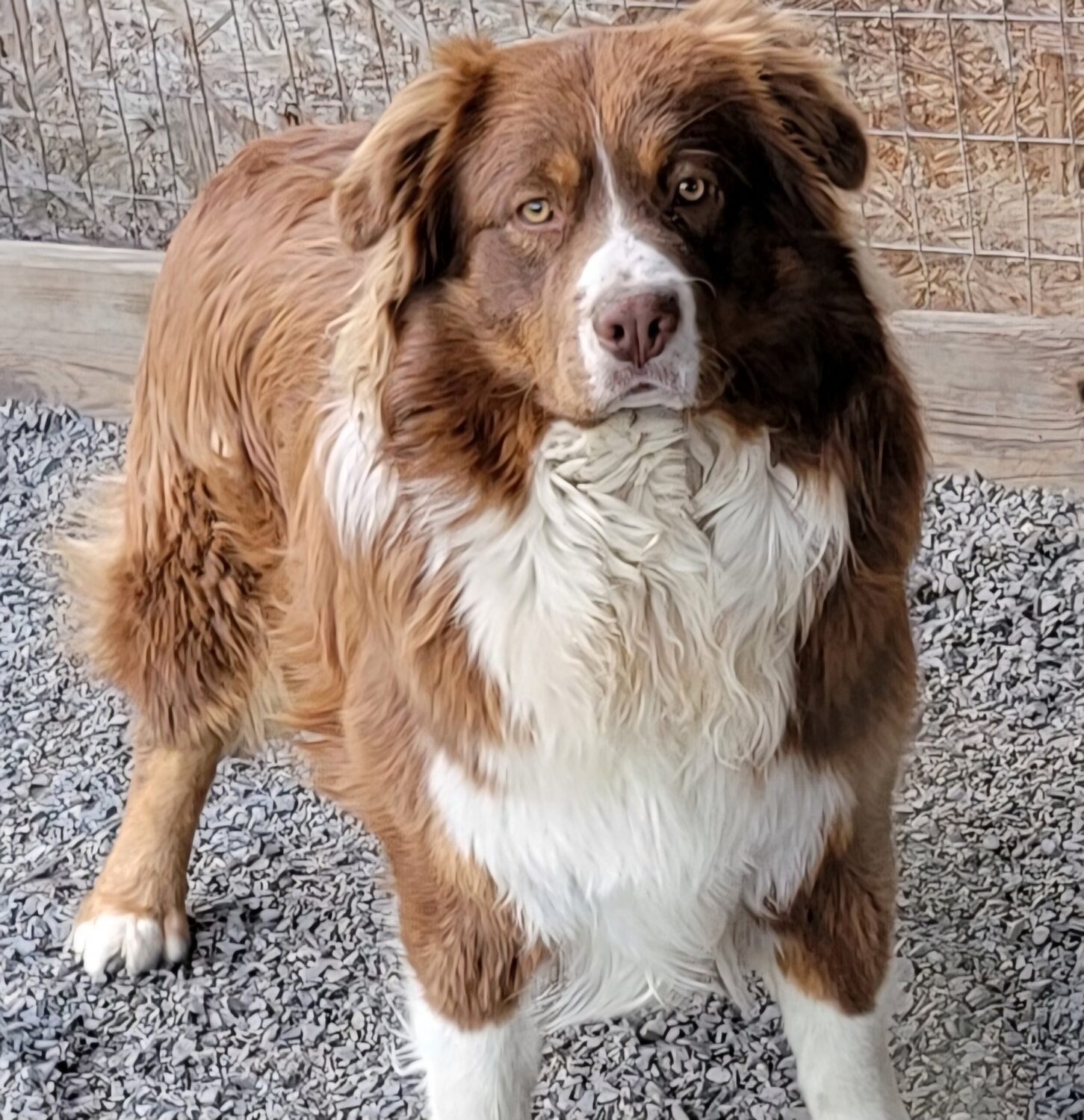Rio is a handsome, and very sweet boy, almost 3 years old. He is around 80 pounds, solid! He is still intact, and I would consider a small breeding home for him, but otherwise would need to be neutered. He would make a great farm dog! He is up to date on all required shots/Vet care, and has been on Heartworm and Flea/Tick prevention meds.