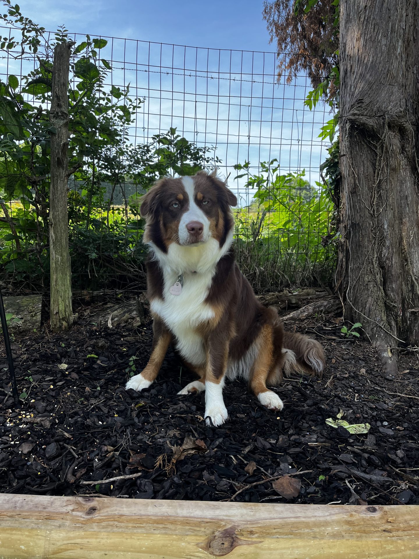 Kaia was born in June of 2019 (River x Maya), so she is coming up on being a year old now. On my way to pick her up, I had no idea what she was going to add to my life, or how much I would grow because of her. Kaia is extremely affectionate, intelligent, and eager to learn new things with me. I take her everywhere, and she stays right by my side. I could not have imagined a dog fit better for my lifestyle or my personality than my beautiful little red tri girl from Brenda. Thank you Ramblin Ridge for this once in a lifetime gift, she is truly my best friend. Once she turns one year old, we will pursue therapy dog training. I think she will be great for it!