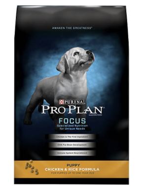 Note about Purina Pro Plan Chicken and Rice Puppy Food: There are 2 versions of this food; one has kibble with shredded chicken (freeze-dried), and the other is just the kibble. We start the young puppies on just the kibble so there is no concern for choking on the shredded chicken pieces. Either version is fine after taking your puppy home with you.